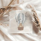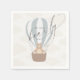 This disposable paper napkin design features a dusty blue hot air balloon with a cuddly brown bear inside, as well as elegantly balanced serif, sans serif and whimsical cursive typography.