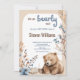Cute watercolor baby shower invitation for baby boy gender neutral, we can bearly wait, blue and brown colours. Available is instant download baby shower invitation, customisable