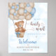 Watercolor Teddy Bear We Can Bearly Wait Baby Shower Welcome Sign Poster. Matching items available.