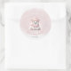 We Can Bearly Wait round stickers for winter girl baby shower. The soft pink, white and grey colours with the cutest polar baby bear girl are just so cute for a girl baby shower. Easily personalise the text. - Kate Eden Art