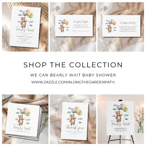 We Can Bearly Wait Bear Balloon Baby Shower Invitation