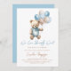 Trendy blue boy baby shower invitation featuring cute teddy bear with blue and brown pastel balloons, "It's a boy" wording and pastel blue in the background. Matching items available.