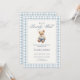 This blue gingham teddy bear baby shower invitation features a classic storybook-style teddy bear dressed in a soft blue outfit, framed by a timeless blue and beige gingham border. The elegant script “We Can Bearly Wait” creates a calm, traditional feel perfect for welcoming a baby boy.
