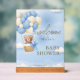 We can Bearly Wait Blue Teddy Bear Baby Shower Acrylic Sign