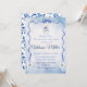Elegant blue and white chinoiserie invitation featuring beautiful navy blue with a teddy bear.