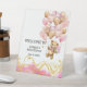 Greet your guests with charm using this stylish “We Can Bearly Wait” pedestal welcome sign! Featuring a loveable watercolor teddy bear, rich blush pink tones and gold abstract accents, and playful pastel pink and golden brown balloons, this tabletop sign is the perfect way to welcome friends and family to your baby shower or special event.