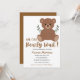 Adorable bear-themed baby shower invitation featuring a charming hand-painted illustration of a sweet cub surrounded by soft greenery and natural foliage. With the playful phrase “We Can Bearly Wait!”, this design creates a warm and cozy feel, perfect for celebrating a baby boy or a gender-neutral baby shower. Ideal for fall gatherings, woodland themes, or nature-inspired celebrations, this invitation adds a touch of rustic charm and cuteness to your special day.