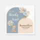 Celebrate the upcoming arrival with these charming "We Can Bearly Wait" Boy Baby Shower Paper Napkins. Featuring a sweet bear holding a bunch of blue and brown balloons, framed by a stylish blue and brown arc and accented with delicate blue floral elements and pampas grass, these napkins add a whimsical and elegant touch to your table setting. Perfect for a boy’s baby shower, they combine both practicality and charm for a memorable celebration! BBS377