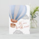 "Celebrate the upcoming arrival of your little cub with this adorable 'We Can Bearly Wait' baby shower invitation. Featuring a sweet teddy bear floating in a hot air balloon, surrounded by soft, fluffy clouds, this invitation brings a playful and whimsical touch to your celebration. Perfect for welcoming your little boy cub into the world!"