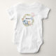We Can Bearly Wait Boy Teddy Bear Baby Shower Baby Bodysuit - This cute little teddy bear can bearly wait for the big baby party. Celebrate the upcoming arrival of your precious baby with this beautiful baby bodysuit. This invitation features a lovely sleeping forest bear dreaming on the air balloon with beautiful floral bouquet decoration and shiny gold stars, balloons around it. All the texts are pre-arranged for you to personalise easily and quickly with your baby shower details.