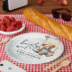 Celebrate your special day in style with this "We Can Bearly Wait" baby shower paper plate featuring a sweet watercolor teddy bear in blue denim overalls on a swing. This charming design is perfect for a baby boy or gender-neutral baby shower and adds a cohesive touch to your party table. Personalised with the baby's name and shower date, this custom plate is ideal for serving snacks, desserts, or cake. Pair it with matching napkins, invitations, and décor for a coordinated teddy bear or woodland-themed baby shower.