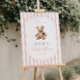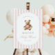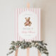 Welcome guests with timeless charm. This grandmillennial baby shower sign features soft watercolor stripes, a vintage teddy bear, and elegant typography — the perfect first impression for a classic celebration.