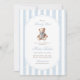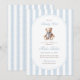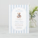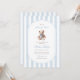 A sweet nod to tradition with a touch of timeless charm. This grandmillennial baby shower invitation features soft blue watercolor stripes, a vintage-style teddy bear, and elegant typography — perfect for celebrating a little gentleman on the way.
