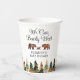 Watercolor pine trees and bear fall themed baby shower paper cups.