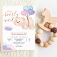 With our customisable options, you can include the relevant details of your baby shower, such as the date, time, location, and any additional information you'd like to share with your guests. The design showcases a cheerful bear with balloons, adding a touch of joy and anticipation to your invitation.