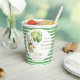We can bearly wait sage green cute teddy bear with balloons gender neutral baby shower personalised monogram printed paper cups template , cute teddy with yellow and green balloons baby shower personalised table decor printed cups