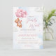 Celebrate your little girl on the way with this We Can Bearly Wait baby shower invitation. A soft, feminine twist on the beloved teddy bear theme. Featuring a sweet brown bear surrounded by pastel pink balloons and stars, this teddy bear invitation adds the perfect touch of warmth and charm to your celebration. Whether you’re planning a cozy afternoon sprinkle or a full baby shower, this customizable digital invite makes sharing your event details effortless.
