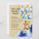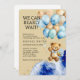Invite loved ones to celebrate your growing family with this adorable “We Can Bearly Wait” baby shower invitation! Featuring a charming hand-painted teddy bear surrounded by elegant royal blue and gold abstract accents, and festive golden brown and blue balloons, this design is perfect for a classy yet playful celebration.
