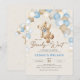 We can bearly wait gender baby boy shower invitation. Trendy design in blue, beige and grey neutral colours. Features watercolor cute teddy bear, balloons script font and stars. Perfect for an elegant boho style shower celebration. Personalise with your own details. Printed Zazzle invitations or instant download digital printable template.