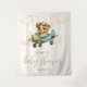 Add a touch of whimsy to your baby shower décor with our "We Can Bearly Wait!" Aeroplane Pilot Teddy Bear Baby Shower Tapestry! Featuring adorable teddy bears flying aeroplanes amidst dreamy clouds, this tapestry creates a charming focal point for your celebration. Hang it as a backdrop for photos, use it as a tablecloth, or display it as wall art to infuse your event with sweetness and joy. Let this tapestry capture the excitement and anticipation of welcoming your little one into the world.