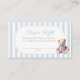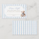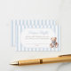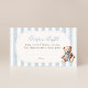A charming addition to your grandmillennial baby shower. This diaper raffle card features soft blue stripes, a vintage teddy bear, and classic typography — a sweet way to encourage guests to bring a pack of diapers.