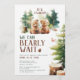 Celebrate the upcoming twins arrival with this adorable “We Can Bearly Wait” baby shower invitation featuring a sweet watercolor bear in a forest setting. Soft greenery, rustic tree stumps, mushrooms, and woodland accents create a charming outdoor theme perfect for nature-loving parents-to-be. The warm, hand-painted artwork and earthy color palette make this invitation ideal for woodland baby showers, gender-neutral celebrations, and cozy rustic gatherings. Easily personalize the event details and create a memorable keepsake guests will love. A perfect choice for forest-themed baby showers, woodland animals décor, and bear-themed celebrations. Add your pregnancy photo to the back.