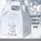 Adorable backdrop tapestry for winter boy baby shower in soft blue, white and grey featuring the cutest happy baby polar bear in a blue hat and scarf. Easily personalise the text. - Kate Eden Art