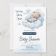 Celebrate the upcoming arrival of your little bundle of joy with this dreamy baby shower invitation! Featuring a snuggly sleeping bear on a soft cloud, playful stars, and pastel aeroplanes, this design is both adorable and heartwarming.
