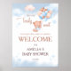 A sweet baby shower welcome poster featuring an adorable teddy bear holding blue and blush balloons with soft cloud and star details. The playful “We Can Berly Wait” phrase gives this watercolor design a warm and memorable look, perfect for greeting guests in style. A lovely choice for a baby boy shower, teddy bear theme party, or coordinated pastel event decor.