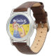 I like the illustrative watch with the lady on it. It is a great reminder that I am blessed and it has a very sturdy leather band. The colors are true and vibrant. Love the color of the Leather also. Very nice.