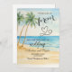 An elegant Wedding Save the Date Card with watercolor beach and palm trees that you can customise with your details.