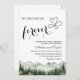 An elegant Wedding Invitation with watercolor mountains and pine trees that you can customise with your details.