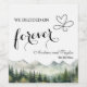 An elegant Wedding design with watercolor mountains and pine trees that you can customise with your details.