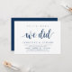 Modern Rustic, Navy Blue Script themed invitation card (with card title: we did). It is perfect for your post wedding elopement reception / post wedding celebration party. Add your details in matching black font / lettering.