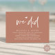Mark the beginning of your forever with elegance using our contemporary terracotta brown earthy themed wedding elopement reception dinner party celebration invitation card, "We did". Perfect for couples extending their joyous occasion, this invitation exudes sophistication with a hint of playfulness, setting the stage for a memorable event. Adorned with a timeless modern script design theme, it adds a touch of refined charm to your festivities. Crafted by TeeshaDerrick, this invitation promises to beautifully capture your love story.
