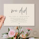 Elegantly announce your happily ever after with our modern-themed wedding elopement celebration invitation card, "We Did". Tailored for couples continuing their love story, this invitation strikes a perfect balance of sophistication and charm, setting the scene for an unforgettable event. Featuring a contemporary modern minimalist script design, it adds a touch of timeless grace to your special day. Designed by the talented TeeshaDerrick, this invitation is a stylish expression of your enduring love.