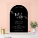 Make a stunning first impression with this modern calligraphy script acrylic wedding sign. Featuring "we do" in an elegant handwritten script with graceful swashes, a hand drawn heart, and an arch border, this sleek design adds a chic touch to your celebration. Personalise it with your names and wedding date for an unforgettable entrance. Shown in black and white on a clear background, but all elements can be re-coloured. © Kimbellished, LLC