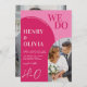 This wedding invitation features the bold "We Do" text nestled within a modern design with a large bold bright pink magenta arch. The text is clear and easy to read, and there's plenty of space for you to personalise the invitation with your own details. including two photos! Showcase your love story with a unique arch-shaped photo on the front and a photo on the back. This clean and modern design is perfect for couples who are looking for a unique way to invite their guests to their special day.