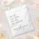 We Do, We Drink, We Eat, We Dance - A modern and light-hearted design for a wedding. Personalise these wedding favour bags with the bride and groom name plus the wedding date. The simple black and white design coordinates with many wedding themes. A minimal look in black and white with a thin, sans serif font plus a wispy script font as an accent. A modern design for a wedding or an anniversary party.