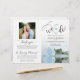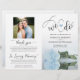 This beautiful wedding program is both modern and elegant. The DIY folded design features modern script lettering on the front reading "we do" with the names of the couple and wedding date/location. There is a photo of a beautiful long-stemmed light dusty blue coloured rose reflecting in a pool of water with waves and ripples. The inside has the same flower as a watermark background with space for the ceremony and bridal party details. The back has your photo, along with space for a customisable thank you note, and a memorial note to recognise lost loved ones. Sophisticated, stylish, and chic, these programs will add class and style to your wedding celebration.