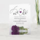 Make it easy for your guests to follow along with the ceremony with these beautiful folded wedding programs. The design features a stunning and romantic design with a single long stemmed plum purple or eggplant coloured rose lying on its side mirrored in a pool of water. There is modern script lettering for the titles with room for details on the ceremony, the bridal party, a photo, a thank you note and a short memorial. The wording on the front reads "We Do" with a cute romantic heart between the letters. Elegant yet fun, these programs are a wonderful addition to your wedding stationery.