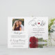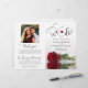 This beautiful wedding program is both modern and elegant. The DIY folded design features modern script lettering on the front reading "we do" with the names of the couple and wedding date/location. There is a photo of a beautiful long-stemmed red rose reflecting in a pool of water with waves and ripples. The inside has the same flower as a watermark background with space for the ceremony and bridal party details. The back has your photo, along with space for a customisable thank you note, and a memorial note to recognise lost loved ones. Sophisticated, stylish, and chic, these programs will add class and style to your wedding celebration.