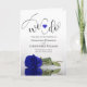 Make it easy for your guests to follow along with the ceremony with these beautiful folded wedding programs. The design features a stunning and romantic design with a single long stemmed vivid royal blue or cobalt coloured rose lying on its side mirrored in a pool of water. There is modern script lettering for the titles with room for details on the ceremony, the bridal party, a photo, a thank you note and a short memorial. The wording on the front reads "We Do" with a cute romantic heart between the letters. Elegant yet fun, these programs are a wonderful addition to your wedding stationery.