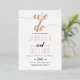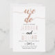 "We do" wedding invitation in real rose gold foil with gorgeous cursive script font in handwriting style. The back is covered in a dusty and white geometric pattern.