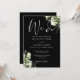 This elegant black and white botanical greenery floral wedding invitation can be personalised with your information in chic typography with your wedding website details and your QR code on the reverse. Designed by Thisisnotme©