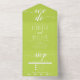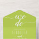 "We do" elegant lime green and white cursive script handwritten style calligraphy wedding all in one invitation.