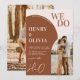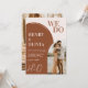 This wedding invitation features the bold "We Do" text nestled within a modern design with a large terracotta arch. The text is clear and easy to read, and there's plenty of space for you to personalise the invitation with your own details. including two photos! Showcase your love story with a unique arch-shaped photo on the front and a photo on the back. This clean and modern design is perfect for couples who are looking for a unique way to invite their guests to their special day.