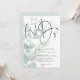 We Do Modern Script Eucalyptus Wedding. Stylish set script We Do takes centre stage at the top. The rest of the text you can easily personalise. Blue eucalyptus leaves are gradually tinted from the left hand side and the text is partially overlaid on the top. A coordinating powder blue background is on the back.