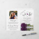 This beautiful wedding program is both modern and elegant. The DIY folded design features modern script lettering on the front reading "we do" with the names of the couple and wedding date/location. There is a photo of a beautiful long-stemmed plum purple coloured rose reflecting in a pool of water with waves and ripples. The inside has the same flower as a watermark background with space for the ceremony and bridal party details. The back has your photo, along with space for a customisable thank you note, and a memorial note to recognise lost loved ones. Sophisticated, stylish, and chic, these programs will add class and style to your wedding celebration.