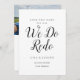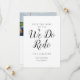 This fun black and white change of date, we do redo card features an elegant script above your details set in elegant typography. The reverse has your special photos, additional details, including your website, with your return address and space for your recipient's address. Designed by Thisisnotme©